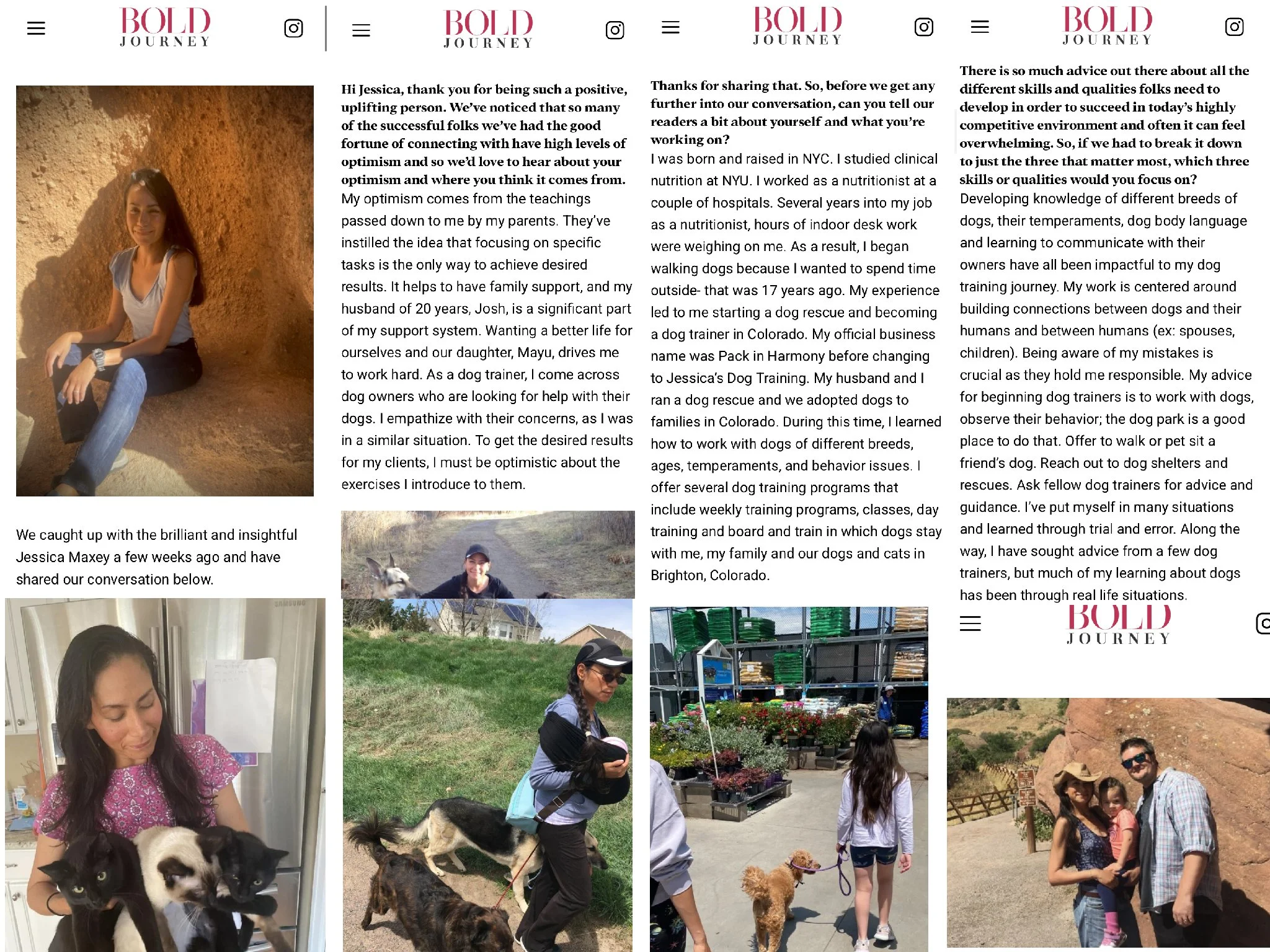 This work lead to learning more and more about dog psychology and I could see how much this information could help others who are also struggling. A challenging dog can be a bridge to deeper understanding of ourselves and how to live in balance as best we can moment to moment with our dog.” - Jessica 2024